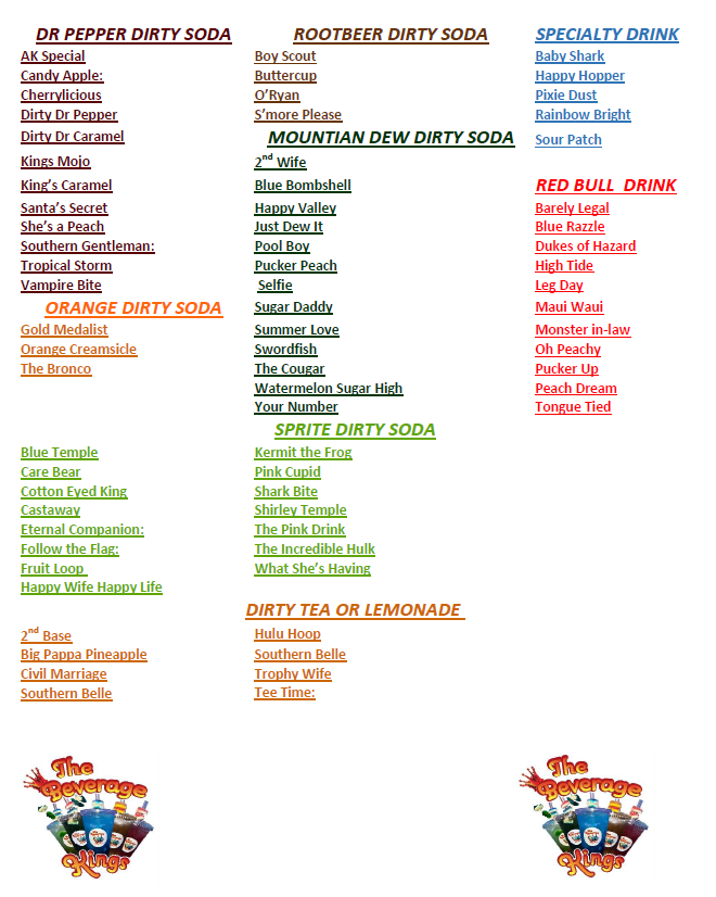 Dirty Soda Menu